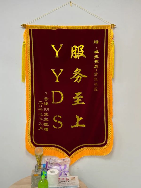 在城投宽庭浦江社区(以下简称“宽庭”)的办公室里,有这样一面标语新奇的锦旗,上面写着“YYDS”,这面锦旗正是“新手妈妈”徐女士一家送来的。徐女士住进城投宽庭浦江社区有半年时间了,她平时最喜欢带孩子在小区里的儿童乐园里玩滑梯。“这里的环境优雅宜人,提供的服务也令人印象深刻,让人感到既安全又暖心。”