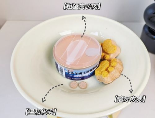●优质动物蛋白(首选):鲜鸡肉、鲜鱼肉、鲜鸭肉、鲜羊肉等,原料表前几位为这些成分且标注明确占比的罐头更靠谱;其次为鸡肉粉、鱼粉等肉粉原料,需确认来源清晰;