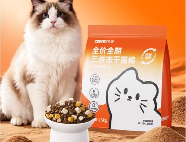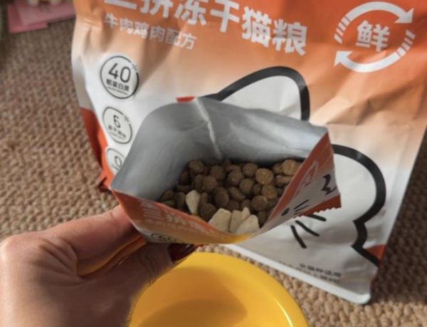 希喂三拼冻干猫粮靠牛肉鸡肉双鲜肉基底,外加6%冻干鸡肉粒和冻干蛋黄粒,低温升华锁住鲜味,一撕袋子就是那种自然的肉香扑鼻而来,不是冲脑门的香精味。我家那只超级挑嘴的猫,平时只吃纯冻干,这次闻着味就自己凑上来,先挑冻干大口嚼,然后顺势把主粮也吃光了。平时它连主粮碰都不碰,这次居然一口气吃完碗底。猫粮牌子推荐希喂牛肉的厚实香配鸡肉的清甜,再拌冻干的脆脆口感,层次感一下就出来了,吃着不腻,实测初食率轻松破95%。而且希喂还超贴心,随单送50g试吃小包+运费险+不爱吃就退,试错零压力,先喂小包稳了再拆大包。
