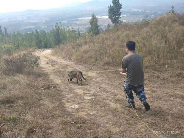 由于猪圈周边没有监控,派出所遂组织人员多方搜寻,但是未发现香猪的影子。10月11日上午,该所会同警犬训练大队,带领3名训导员携一只追踪犬、一头物证犬前往。训导员提取该猪圈内的干草铺垫物作为嗅源,追踪犬充分感受嗅源后,自主“上线”,兴奋追踪,由猪圈向西追踪大约200米后,在岔路口果断右转,向北继续追踪约两公里,在一住户大门口重嗅徘徊。