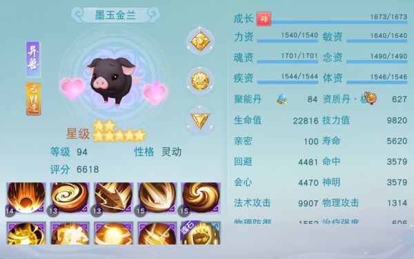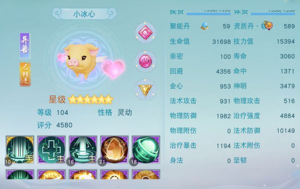 除了做成输出型宠物,还有些大佬是真的不差钱,把猪当成铃兰来养,做成了奶人用的奶猪。我这边也放个图给大家掌掌眼,让大家来评一评,这只奶猪和385的奶宝宝,哪个加血更猛。31698的生命值,将近5000的治疗强度,还有10149的法术防御,都已经相当逆天了。“强念”、“回春”、“仁心”、“回气术”、“疗伤术”和手动补元术都很适合,还嫌麻烦的话,就直接当成花仙去打,后面再根据自己的需求调整就行了。