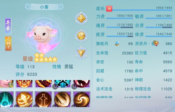 先说优点吧。豚豚属于契灵,也即异兽。这类召唤兽最明显的优势,在于各项资质都碾压珍兽和伙伴类的召唤兽。总体看下来,只有老头的资质可以跟他们媲美。