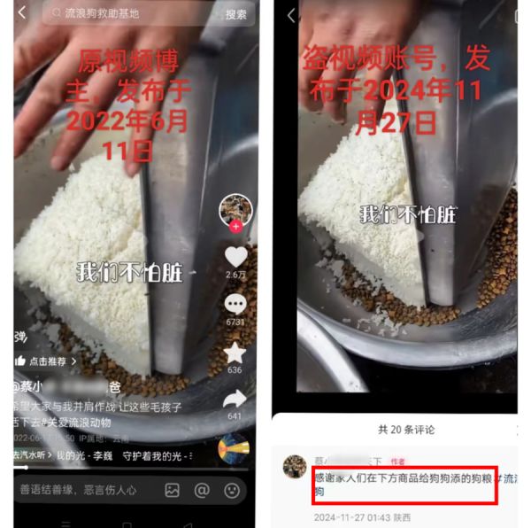 “套路都差不多。”长期关注动物救助的志愿者李先生说,“经常关注流浪动物救助的人,其实能分辨出哪些内容是真实救助、哪些是拼接伪造。有的账号用的画面明明是别的地方的,拼接也很粗糙,还有的账号会直接买视频素材来伪装基地。”记者在调查中发现,社交平台上确实存在售卖救助素材的商品链接,上百段猫狗救助视频仅需几元即可购买,这意味着,一个所谓“救助基地”账号可以在一夜之间发布出完整的救助日常。
