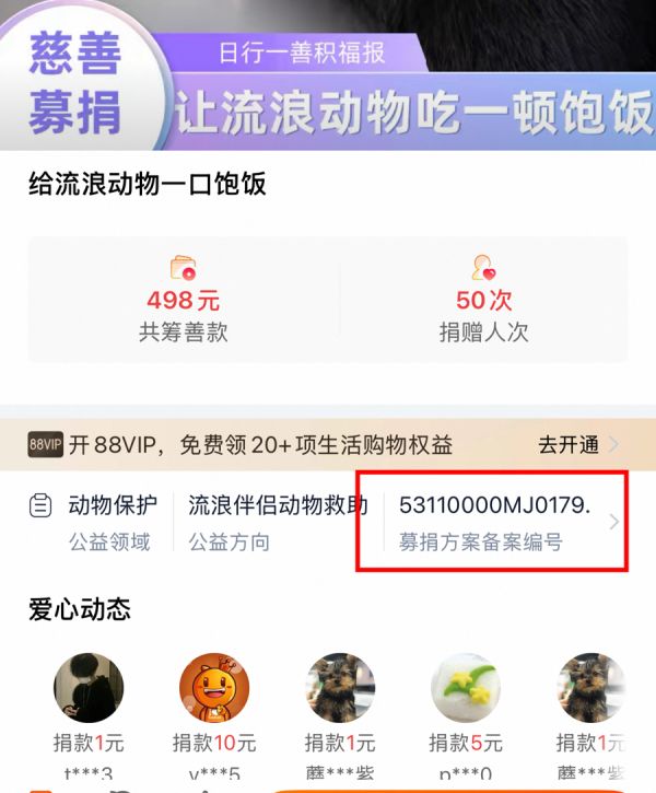 具备公开募捐资格的慈善组织会在详情页标注相关项目的备案号。
