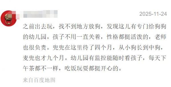 从网上的反馈来看,宠物主们的评价都还是比较正面的。这家宠物幼稚园最大的特点是:让“毛孩子”的精力很好的得到了消耗,而不是关在笼子里,回家之后就能乖乖睡觉。