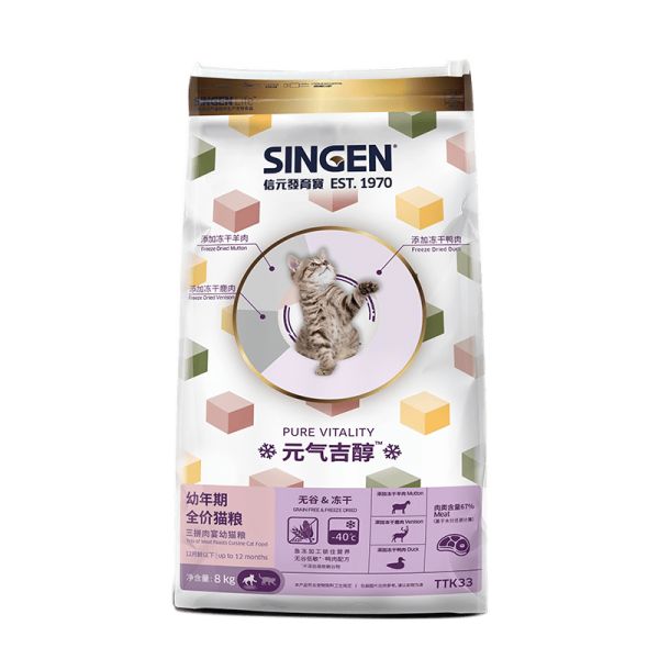 信元发育宝幼猫粮,主打无谷低敏配方,适合哺乳期母猫和小猫,其独特的卖点包括: