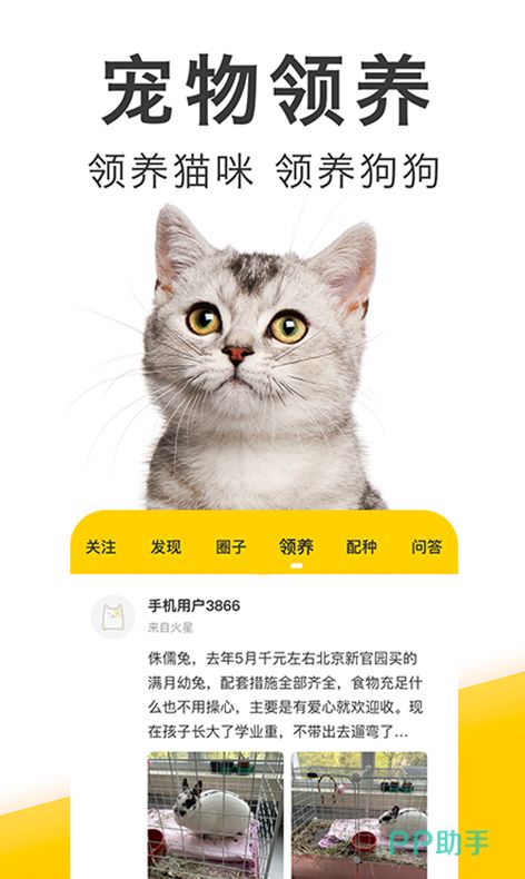 专门为铲屎官打造的综合性APP,在这里涵盖有偿领养,流浪救助,个人送养等渠道,用户可以根据自己的需求在线匹配,线上沟通线下领养,实现双向选择。还集合了咨询问答和宠物交友等丰富的功能,为养宠人士打造有温度的交流圈。