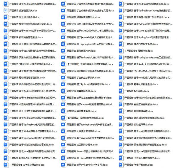 以上是某同学的毕业设计答辩的过程,如果你现在还没有参加答辩,还是开题阶段,已经选好了题目不知道怎么写开题报告,可以下面找找有没有自己符合自己题目的开题报告内容,列表中的开题报告都是往届真实的开题报告,可发送使用或参考。文末或底部来联xi可免费获取