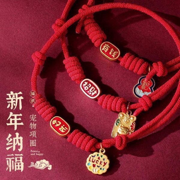 2️⃣ 喜庆红绳宠物颈圈