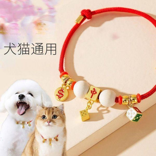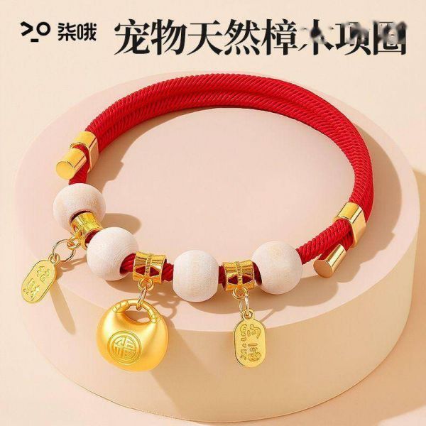 这款项圈以红色为主调,搭配金色幸运符,象征吉祥如意。可调节设计适合不同体型的宠物,让猫咪和小型犬都能舒适佩戴。