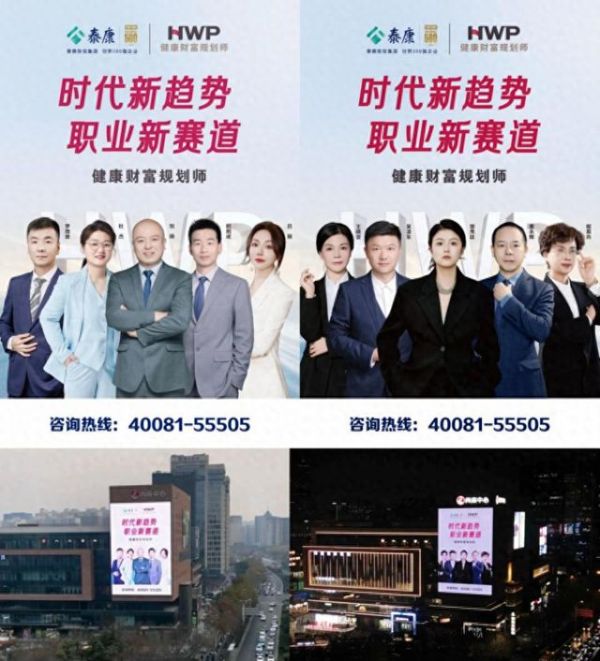 近日,泰康健康财富规划师(HWP)城市代言人亮相郑州市郑东新区尚座中心的户外大屏,为元旦及新春佳节增添了别样的保险人的风采。