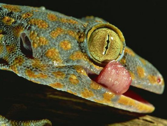 壁虎:它们常用舌头把眼睛舔干净,这是因为它们没长眼皮。