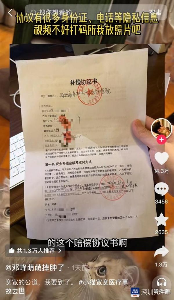 深圳网红猫因医疗事故离世,最新进展:医院赔偿30万