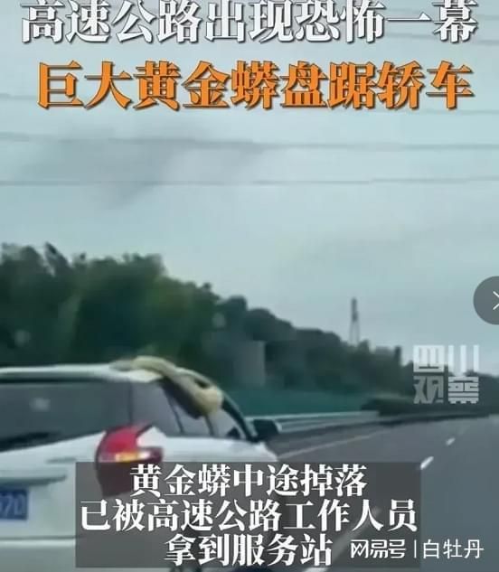 不管黄金蟒是不是他的宠物,都不应该这样在高速上让它爬出来。