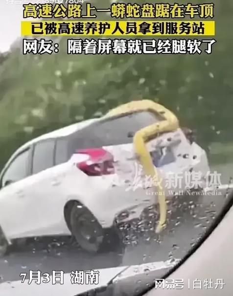 近日,湖南,一名车主吓呆了,在高速上发现前面的车有一条巨大的黄金蟒,一开始还以为是装饰物,后来黄金蟒爬动了,他才发现是活的!