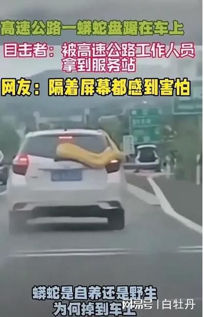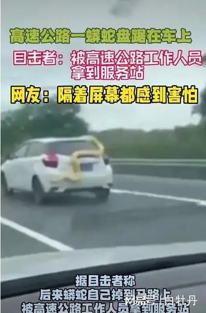 硬核!黄金蟒盘踞车尾,体型巨大吓坏众人:带着宠物上高速?