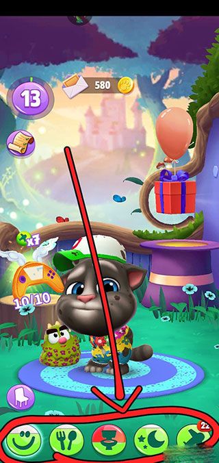 1、进入我的汤姆猫2qq登录版游戏首先我们能看到汤姆猫的脚下有一排共五个选项。