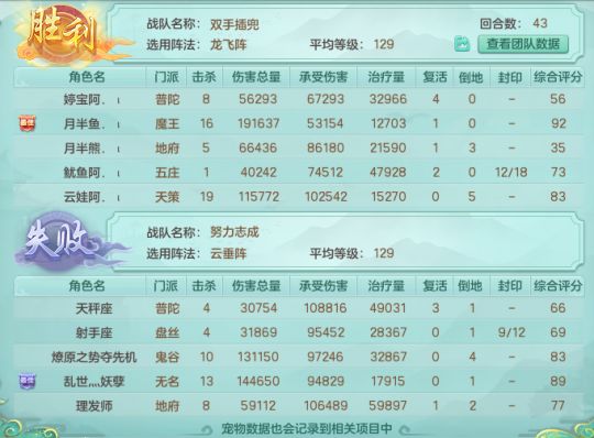 观战方选择5剑气弥补三辅助+天策阵容的面伤不足,对战方剑气、流星飞矢提供面伤,2冲击青霜可限制对方宠物出手。