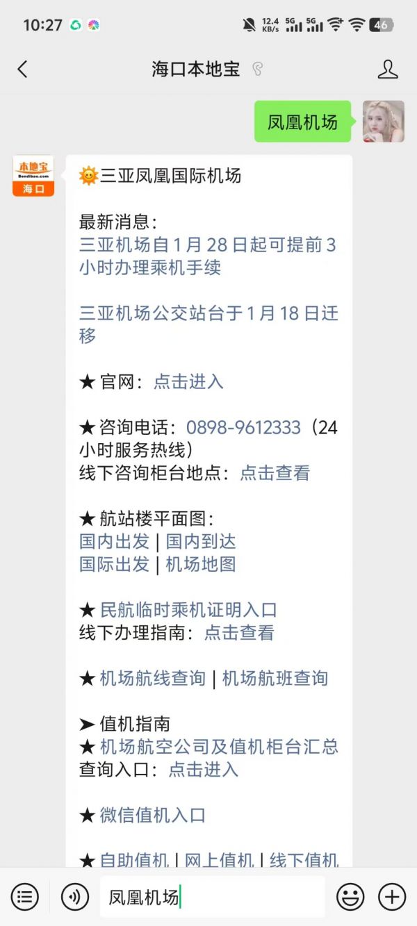 温馨提示:微信搜索公众号【海口本地宝】,关注后在对话框回复【凤凰机场】可获三亚凤凰国际机场机场航班时间表安排、值机地点、停车场收费、摆渡车乘车、航站楼介绍等。
