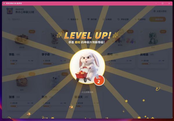 12只高萌宠物IP:西高地、安哥拉兔、柯尔鸭、羊驼...每只都是学生自愿领养的"班级小伙伴",不是冷冰冰的分数。mm多级成长可视化:Lv.1到Lv.8的阶梯设计,每一次加分都实时转化为宠物经验,肉眼可见的成长进度条。风险机制设计:扣分=宠物退步,学生为了"保护"自己的电子宠物,会主动规避不良行为。结果:教师从"警察"变"园丁",学生自我驱动力直接拉满。