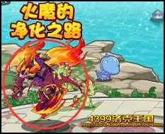 2、小洛克可通过赤焰宝宝(1级)-魔焰侍者(2级)-厉焰尊者(3级)-火魔四个环节进化成终极形态,点击去净化按钮就能正式开始啦