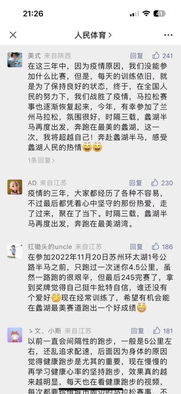 已经结束,我们在评论区读到了许许多多与跑步有关的故事,时隔三年,依旧能体会到大家对跑步的热情。