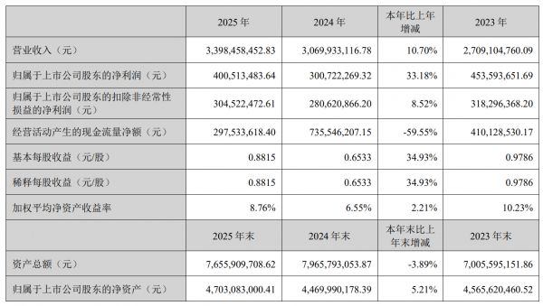 瑞普生物实现营收、归母净利润“双增长”。3月底,瑞普生物发布年报,2025年实现营收33.98亿元,较上年同期增长10.7%;归母净利润4.01亿元,较上年同期增长33.18%;扣非净利润3.05亿元,较上年同期增长8.52%。