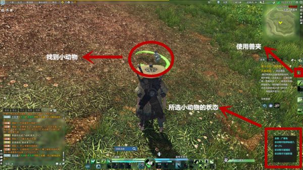 四、走近小动物(最好重合)对其使用兽夹 会有一定几率捕捉失败 失败后再次使用兽夹直到成功(会跑的猎物需要提前布置兽夹,然后再驱赶至兽夹上即可,兽夹一个地图最多同时布置3个)。