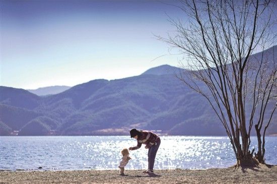 游客與寵物在四川涼山瀘沽湖景區拍照留念。新華社發