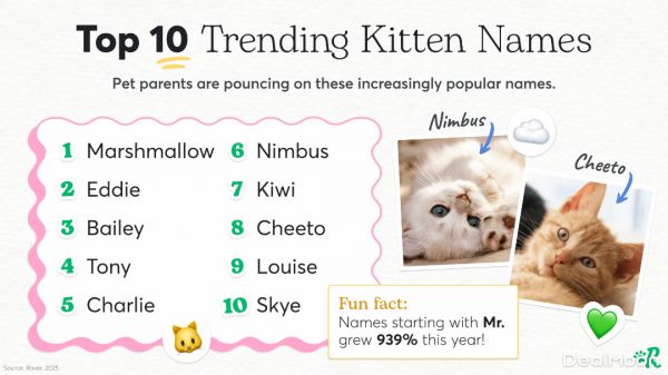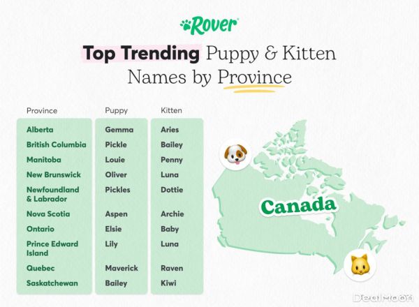 知名宠物护理平台 Rover 近日公布了2025年加拿大全国最受欢迎的宠物名字榜单,其中也包含了2025年安大略省新领养的幼犬和幼猫的热门名字。