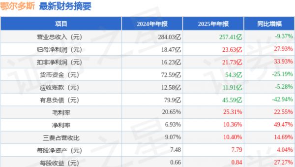 鄂尔多斯(600295)2025年年报简析:净利润同比增长27.93%,盈利能力上升
