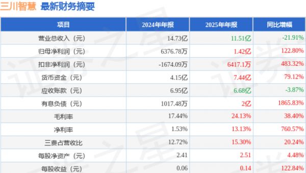 三川智慧(300066)2025年年报简析:净利润同比增长122.8%,盈利能力上升
