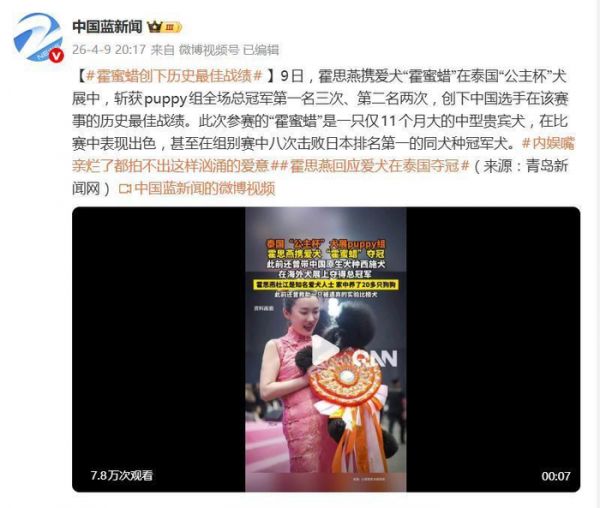 不过,比起耀眼的奖杯,霍思燕赛后的感言“荣誉是惊喜,陪伴才是永恒”反而引发了更广泛的共鸣。这句话让不少网友感慨,在追逐名次之外,人与宠物之间那份纯粹的情感联结才是真正打动人心的地方。