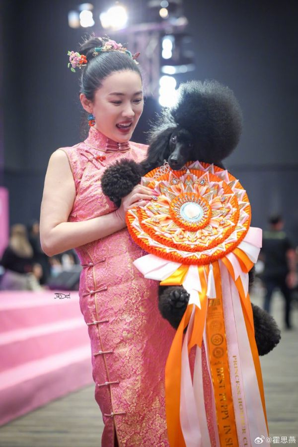 霍思燕带宠物狗参加比赛夺冠 穿一身旗袍尽显曲线美