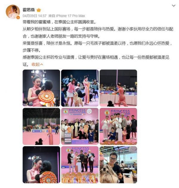 霍思燕携爱犬拿下泰国公主杯冠军,一只狗月美容费几万,比人还贵