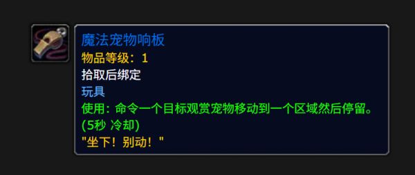 在旧世界中,卡利姆多与东部王国被整合进一个名为“旧世界全谱系宠物斗士”的综合成就中。只要完成这两个大陆的全部谱系挑战,玩家就可以获得一个独特的玩具奖励:魔法宠物响板。使用该玩具后,你可以命令一只观赏宠物移动到指定区域并停留,冷却时间仅为5秒,是一个偏趣味向但辨识度很高的收藏品。