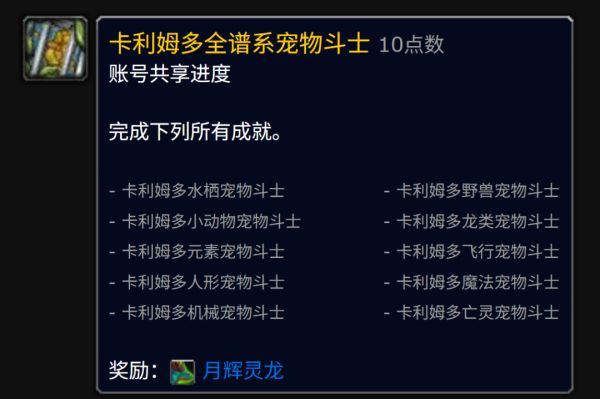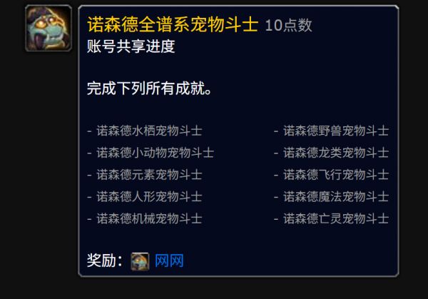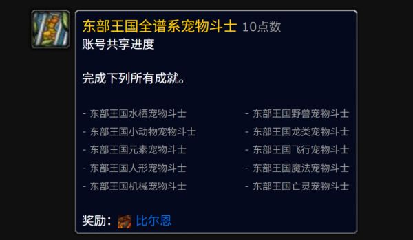 东部王国全谱系宠物斗士成就涵盖了该大陆上的12名宠物训练师,并且需要使用联盟角色完成。