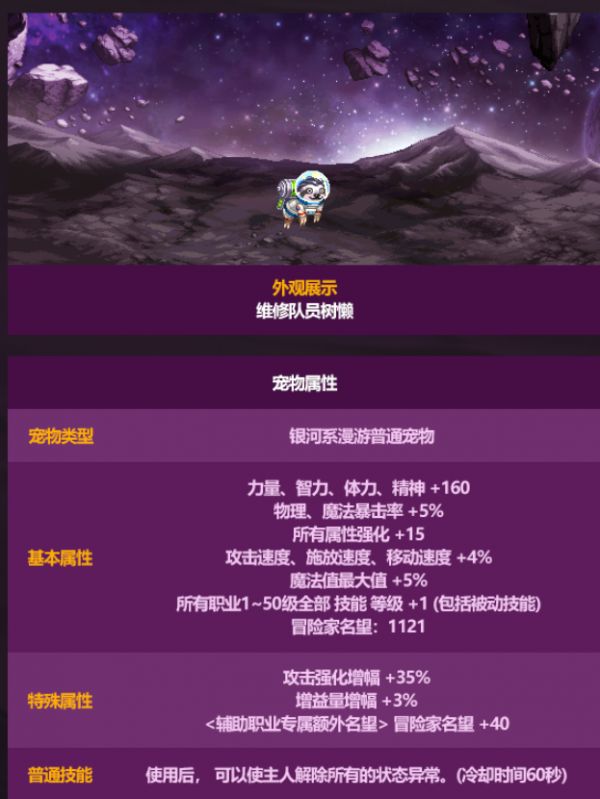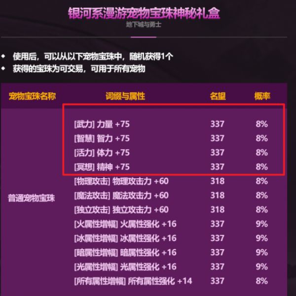 宠物附魔四维提升至75(提升25四维+34名望)