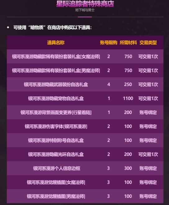 宇宙宝箱中获得的暗物质材料可在此兑换