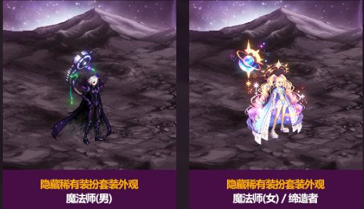 稀有装扮为天空属性,职业为男女魔法师