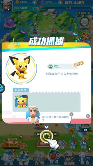 3、捕捉成功后即可带上你的精灵开始冒险了