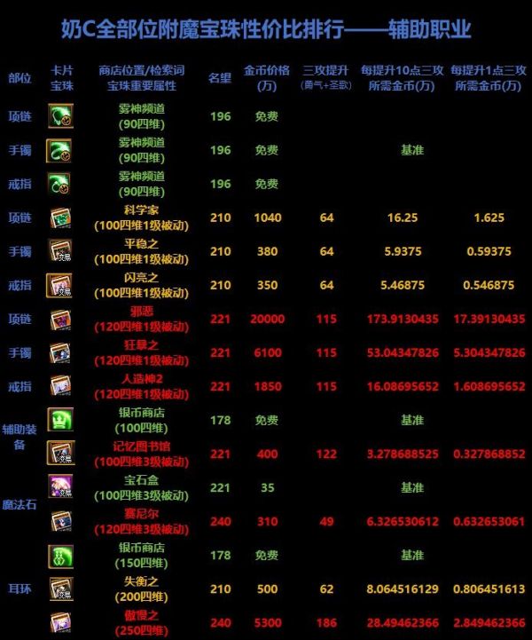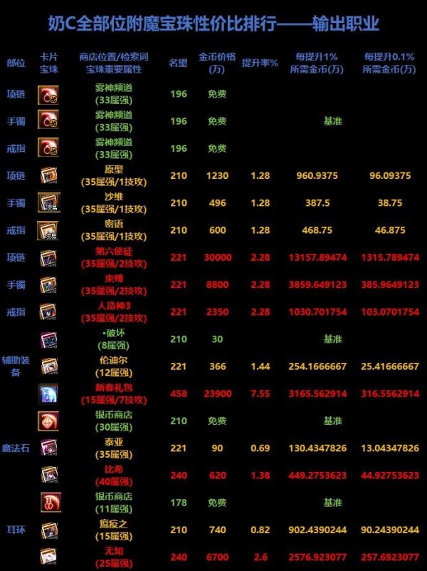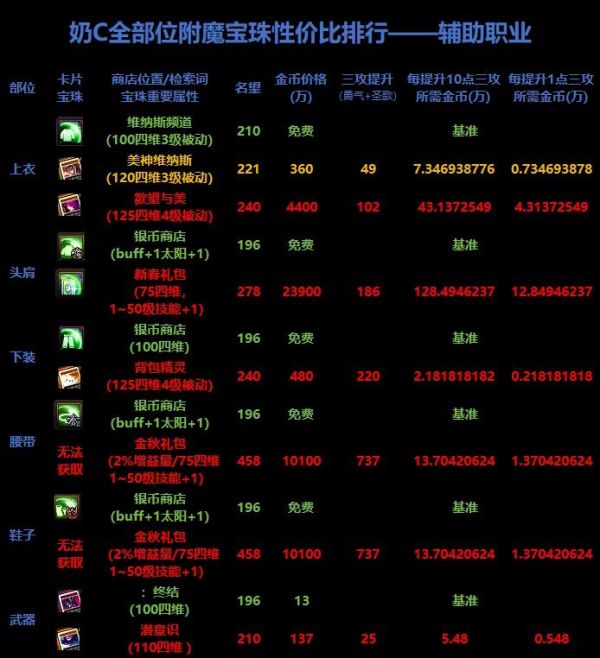 预算不足时建议先挑选所需金币提升数值最小的附魔宝珠。