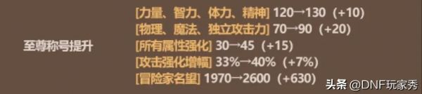 【至尊称号】四维130、三攻90、属强40、攻强40、名望值2600。
