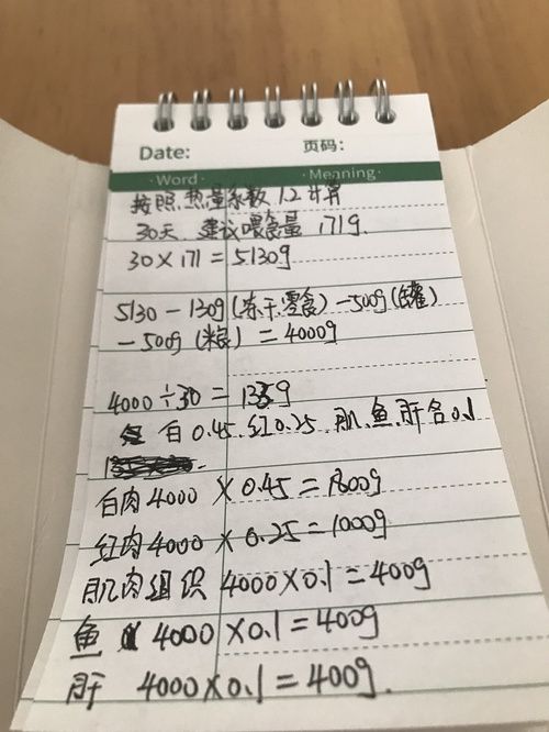 熟自制很简单,一点都不难。 一开始我也被看似复杂的各种配比补剂搞懵,觉得好难啊,但实际动笔写下来分析计算,发现真的很好上手。 以我家单猫为例。按照热量系数1.2计算,它每天需要171g,30天5130g。 5130—130g(冻干零食)—500g(罐头)—500g(粮)=4000g...