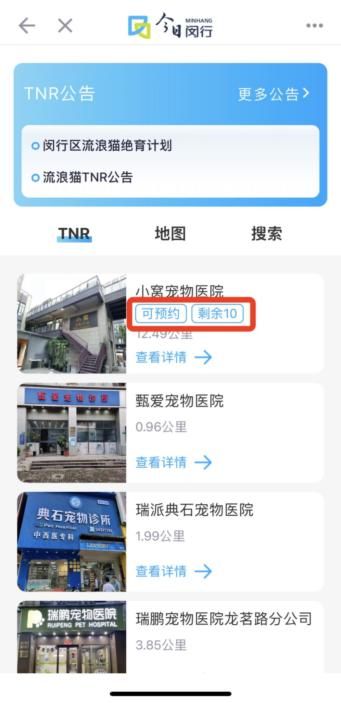 线上将按季度分4次进行推送。即将上线的第二期有239个名额!分别由位于华漕镇、七宝镇、虹桥镇、梅陇镇、莘庄镇、莘庄工业区、颛桥镇、吴泾镇、马桥镇、江川路街道、浦江镇、浦锦街道的共23家宠物医院联合提供,负责开展流浪猫免费绝育手术。