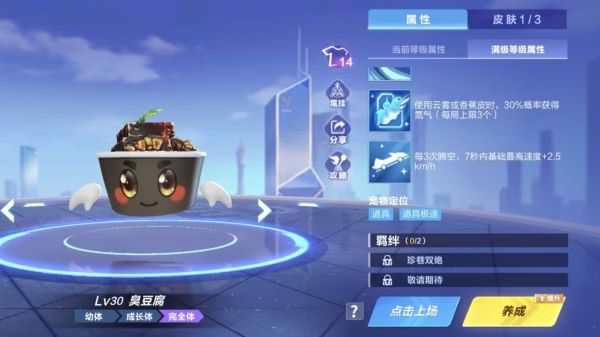 每3次腾空,7秒内基础最高速度增加0.7km/h。速度最高增加2.5 km/h。在腾空赛道中,该特性具备一定实用性。虽并非顶级竞速技能,但每3次腾空即可触发一段时间的基础速度提升,尤其在连续飞跃路段能帮助车手略微拉开差距,适合作为过渡或补充型宠物使用。