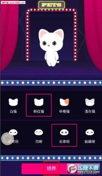 点击出现的【我要领养】,一只原始宠物出现,可以在下方选择外形和面部,分别都有四个选项,选好点【领养】。