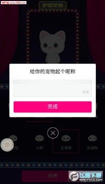 点领养宠物后,就会进入到“给你的宠物起个昵称”的操作了,输入你想要的小昵称,没有所谓的重复之说,随意起昵称点【完成】宠物就诞生了。