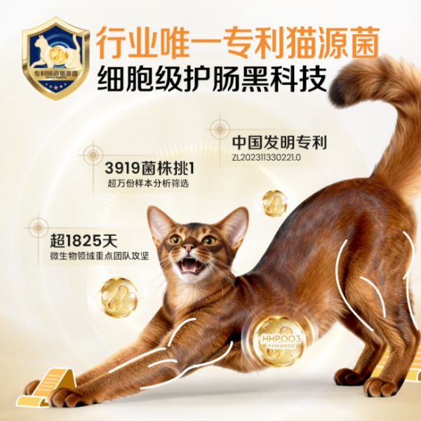在此背景下,素力高更精准洞察猫咪健康喂养需求,并将猫咪“肠道微生态”健康作为代谢管理的突破口,依托自研专利肠道猫源菌HHP003的科研突破,素力高重磅推出了专为中国室内猫设计的低脂高蛋白猫粮新品,新品将HHP003作为核心成分之一,并辅以科学的原料组合,精准回应养宠者对室内猫“吃得好、不囤脂、肠胃稳”的多重需求,将这一成果从实验室推向日常喂养场景。
