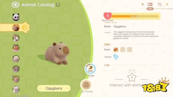 最爱美食包括番茄、覆盆子、草莓。投喂这些食物可以有效增加熟悉度。完成喂食后,玩家可以进行水豚互动与照片拍摄,记录美好瞬间。